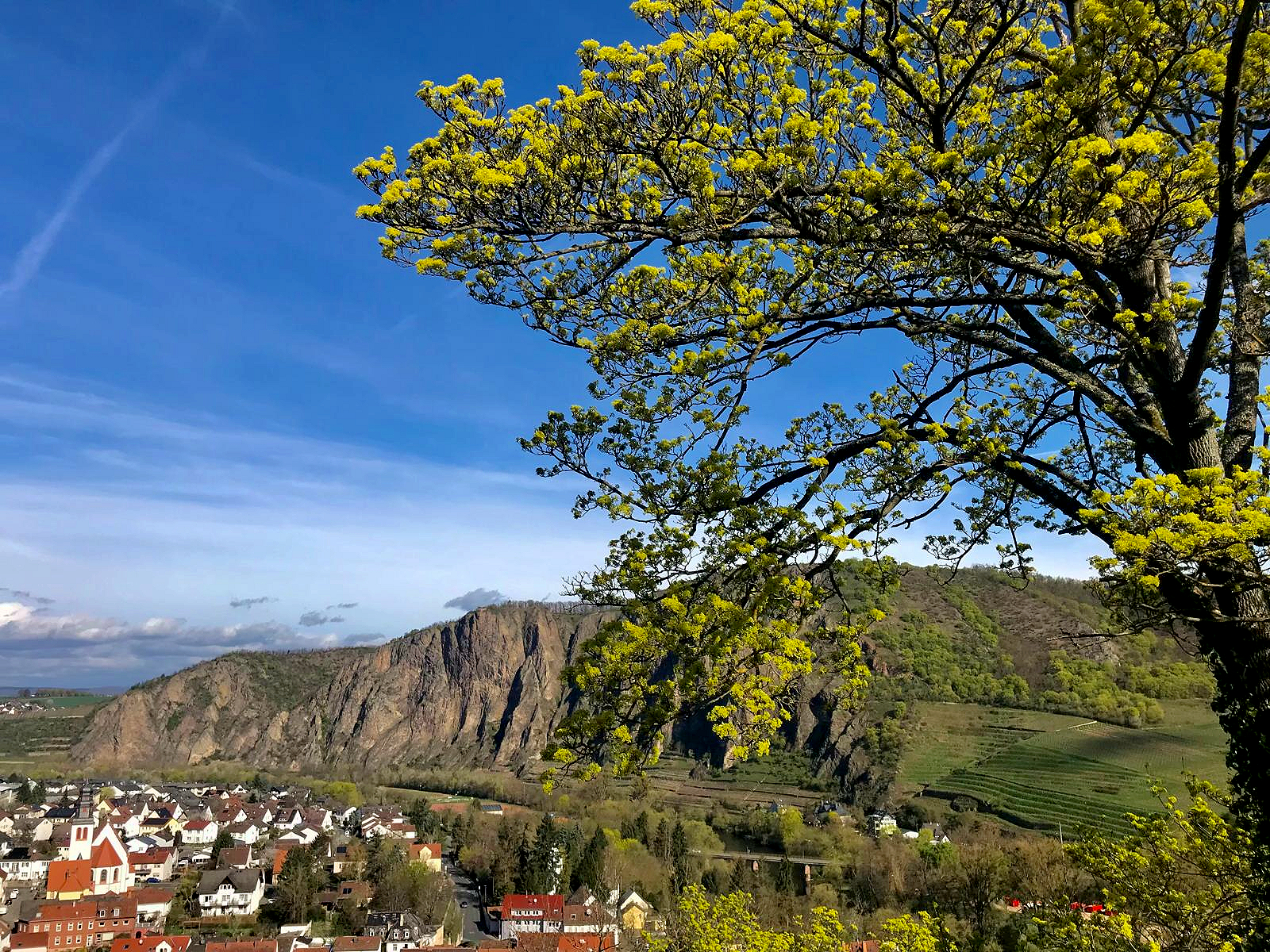 Nordpfälzer Berglands, mit Wäldern und Weinbergen, umrahmt von den Felsmassiven
