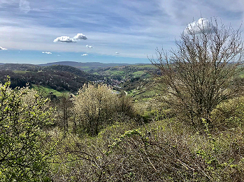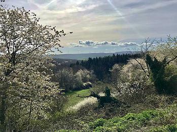 Nordpfälzer Berglands, mit Wäldern und Weinbergen, umrahmt von den Felsmassiven